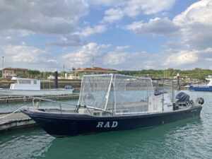早々に船を上げロープで船を縛りテントを外し操船席のアクリルも外し台風対策を終える・・・